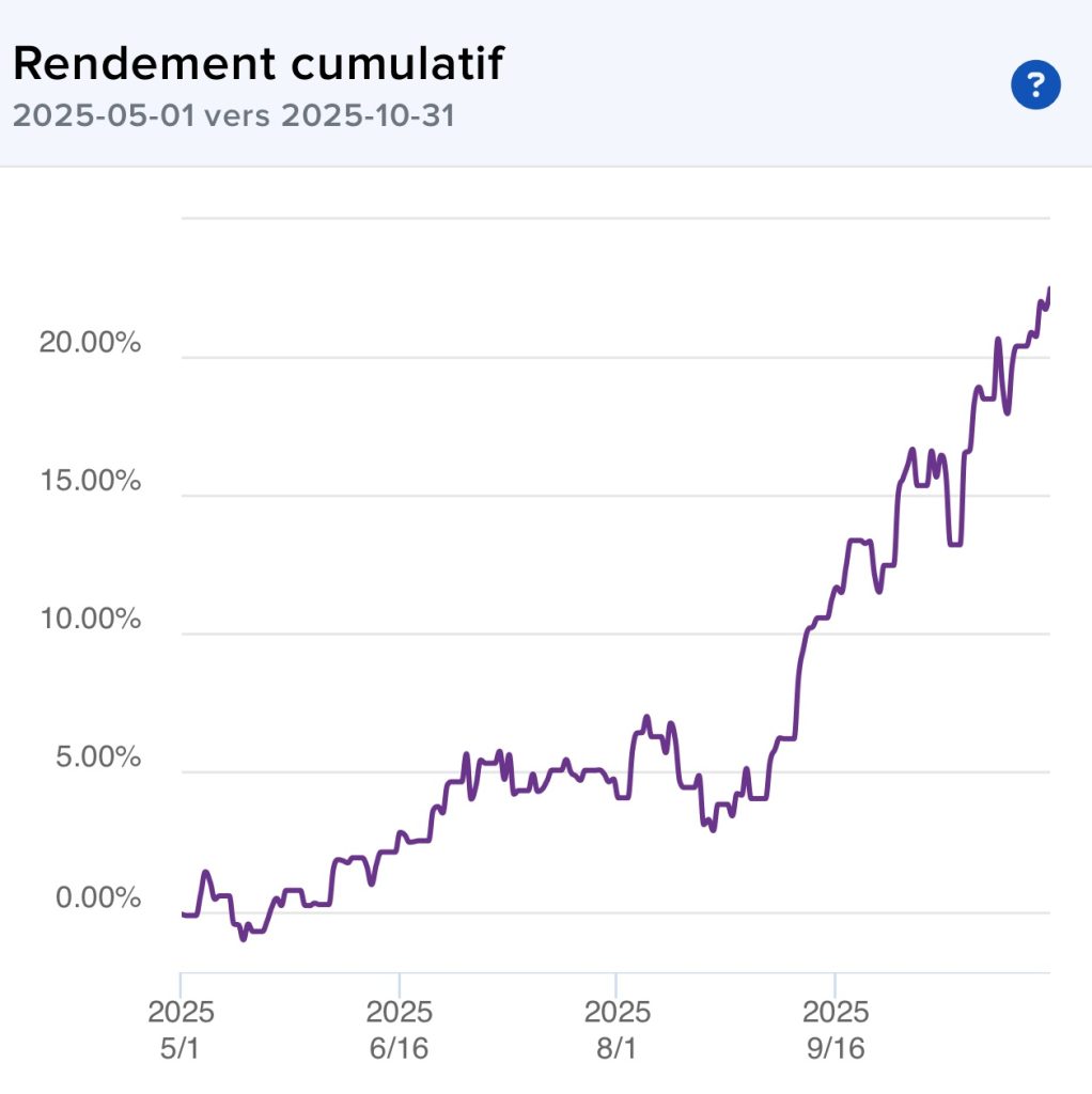 J’ai commencé en juillet 2025 et au 30 septembre je suis déjà à 15.97% de plus-value.